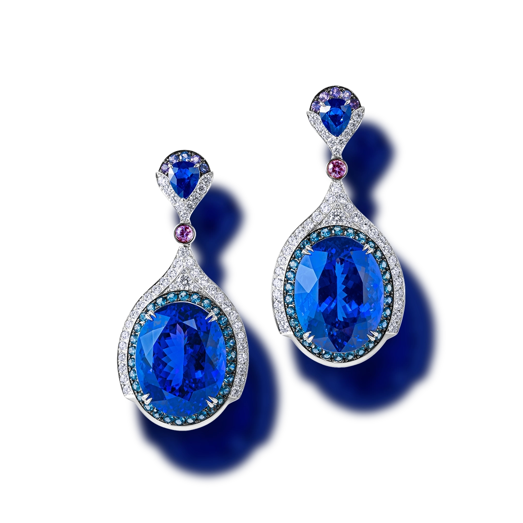 Naomi Watts wears Modern Art Deco earrings in Sapphire to 87th Academy Awards.