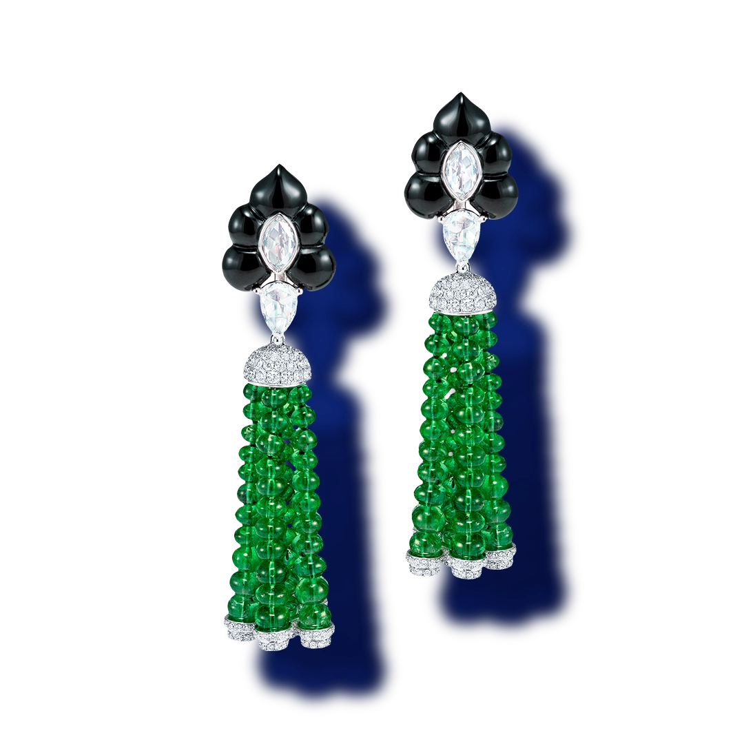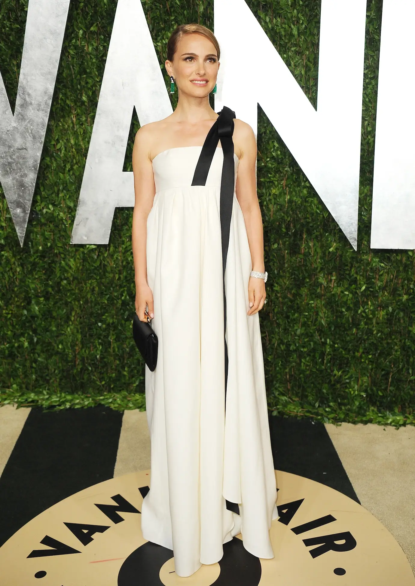 Natalie Portman wears Turandot earrings in Emerald and Wallis Simpson bracelet to the Vanity Fair Oscars Party.