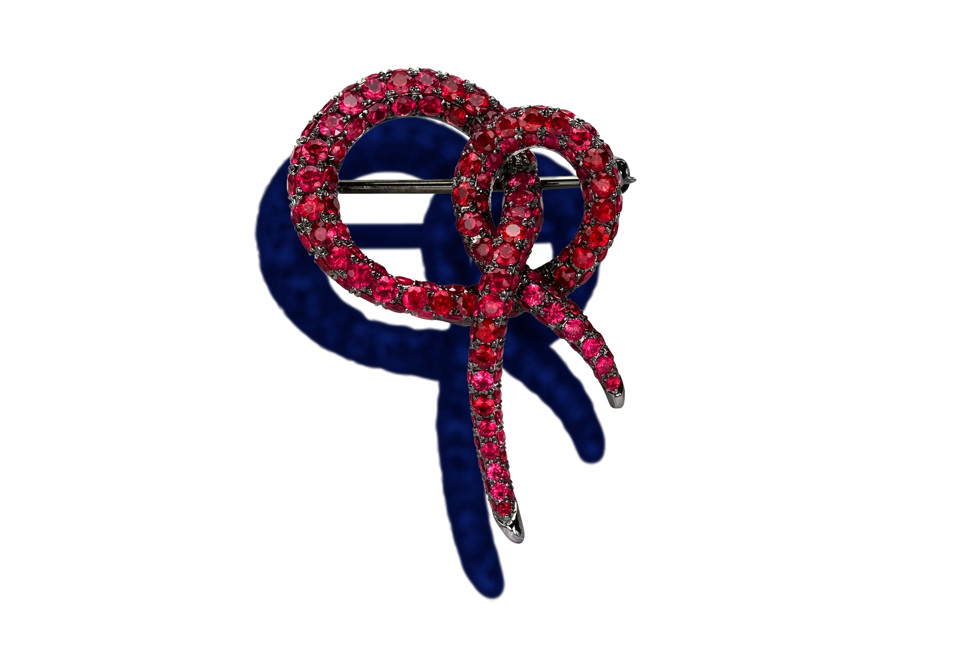 Love Knot Brooch in Ruby ![]() Round cut rubies in 18K black gold | ![]() |