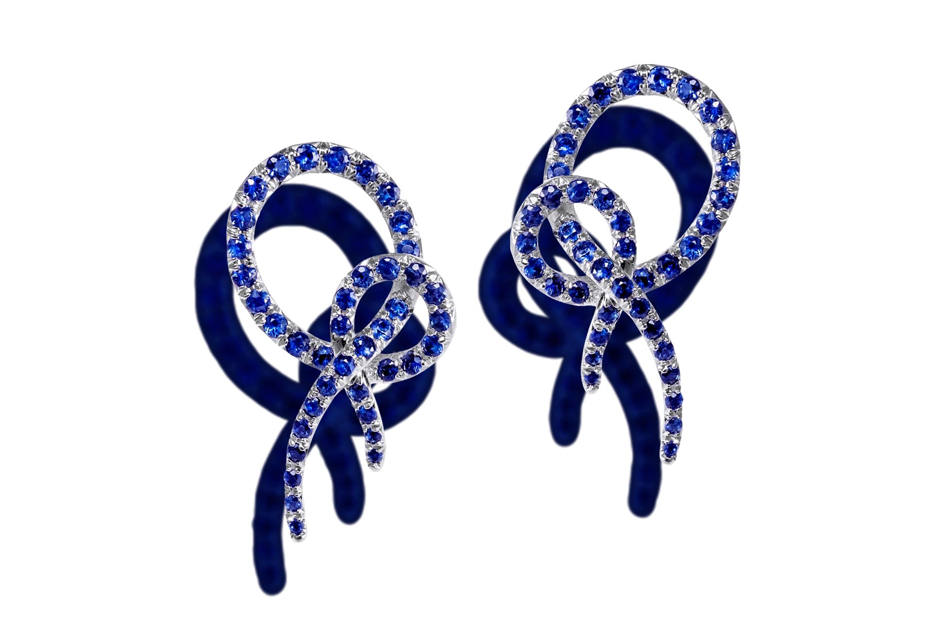 ![]() | Love Knot Earrings in Sapphires ![]() Round cut sapphires in 18K white gold |