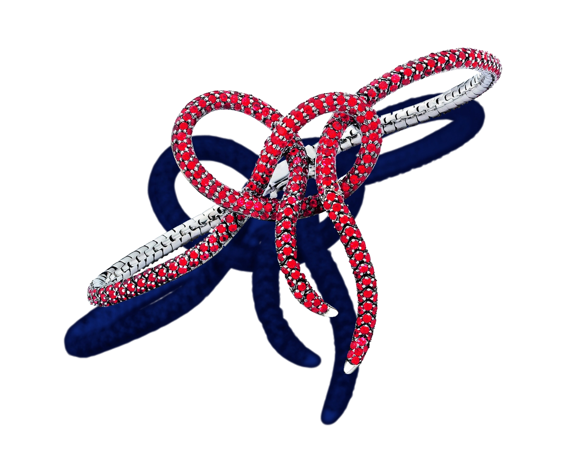 ![]() | Love Knot Bracelet in Ruby ![]() Round cut rubies in 18K white gold |
