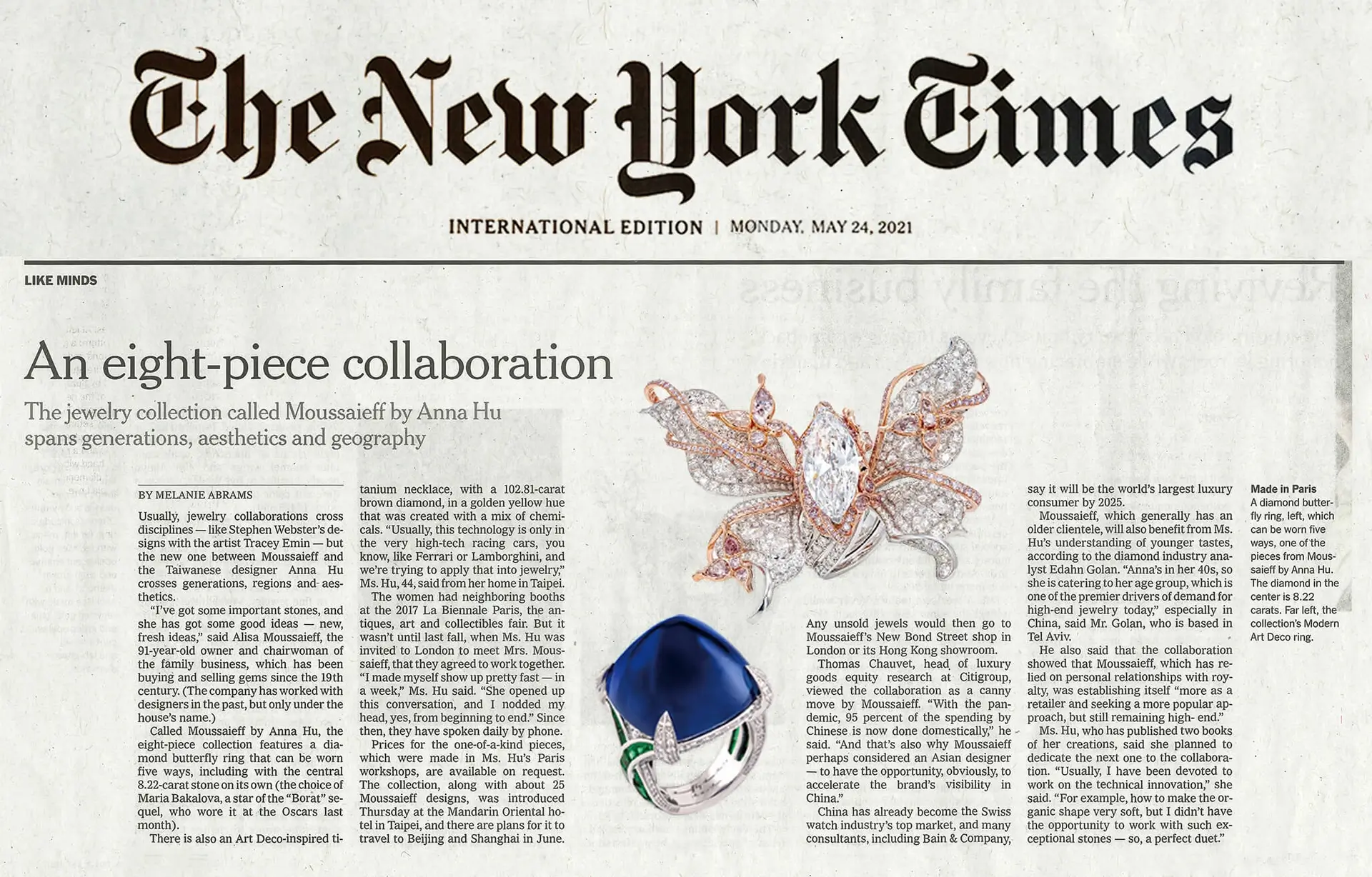 Meeting of minds between Alisa Moussaieff and Anna Hu crosses cultures and generations